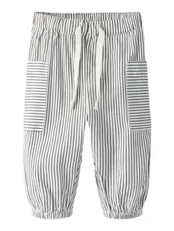 Far Byxor från NAME IT är ett perfekt val för vardagens alla äventyr. Byxorna har en mjuk och följsam passform som ger barnet full rörelsefrihet, oavsett om det är lek på förskolan eller en lugn dag hemma. Den elastiska midjan gör dem enkla att ta på och av, samtidigt som de sitter bekvämt hela dagen. Den stilrena designen i färgerna Cloud Dancer och Navy Blazer gör att byxorna passar till det mesta i garderoben. Materialet är slitstarkt och håller sig fint tvätt efter tvätt.Specifikationer:Varumärke: NAME ITMaskintvätt 40 °CElastisk midjaMaterial: 100% ekologisk bomull