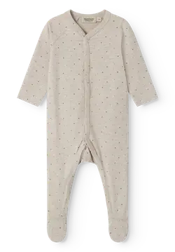 Renas jumpsuit från MarMar Copenhagen är en söt och bekväm jumpsuit för de små. Dräkten är tillverkad i ett mjukt och stretchigt tyg som garanterar optimal rörelsefrihet och komfort för ditt barn. Den har fötter som håller små tår varma, och den praktiska tryckknappsstängningen längs hela dräkten gör det enkelt att klä på och av ditt barn och byta blöjor. Det fina, diskreta prickmönstret i en beige melangefärg ger en klassisk och stilren look som passar alla tillfällen. Jumpsuiten passar både dagtid och nattetid och är ett säkert val för ditt barns basgarderob.SpecifikationerJersey med elastanMjuk, stretchig och bekväm att ha på sigAndningsbar kvalitetBehåller form och färgOeko-tex® - Testad för skadliga kemikalierFärg: Beige Mel DotStängning: Tryckknappar hela vägen nerMed fötterDesignad i Danmark