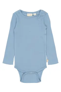 Stone Långärmad Body från PETIT PIAO är ett perfekt basplagg för de minsta. Den är tillverkad i en mjuk och stretchig bomullsblandning som känns behaglig mot huden och ger barnet full rörelsefrihet. Den långärmade modellen håller barnet varmt under kyligare dagar, medan de praktiska tryckknapparna i grenen gör blöjbyten smidiga. Den ribbade strukturen ger en skön passform och den ljusblå färgen ""Infinity"" passar till det mesta i garderoben. En tidlös och användbar body för vardagens alla äventyr.Specifikationer:Färg: Infinity (ljusblå)Lång ärmTryckknappar i grenenMaskintvätt 30°CMärke: PETIT PIAO